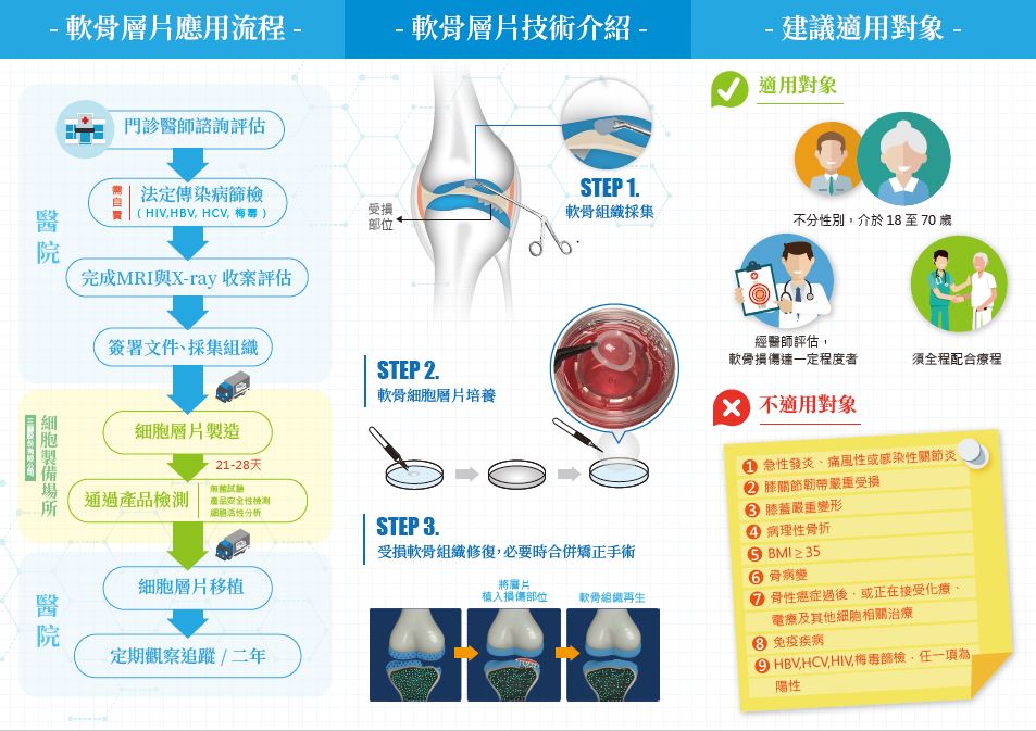 聯絡方式:細胞治療中心(02)2737-2181轉7520 或 0970745172個案管理師(軟骨層片諮詢及門診預約)