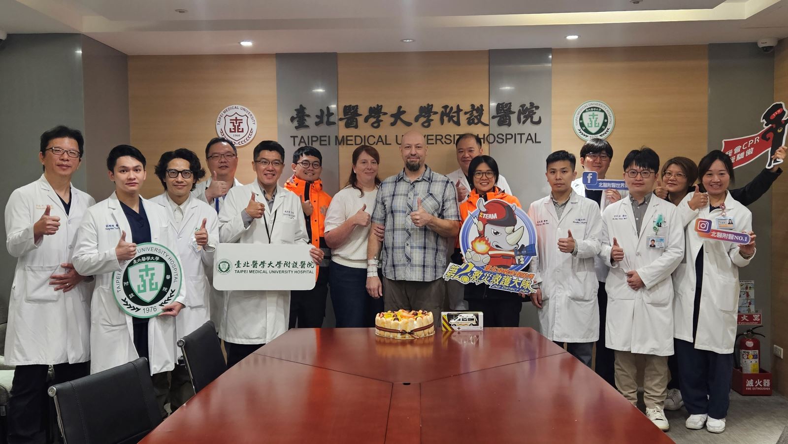 一名美籍旅客11月初在台北市象山爬山途中突然倒地、失去意識,行經的民眾立刻施以CPR(心肺復甦術)並迅速取得AED(自動體外心臟去顫器);消防人員到場後接手急救,緊急將OHCA(到院前心肺功能停止)的病人送抵臺北醫學大學附設醫院。醫療團隊診斷為急性心肌梗塞,即刻啟動心導管團隊與葉克膜團隊搶救。歷經兩週治療,病人順利康復出院,成功完成這場分秒必爭、缺一不可的生命接力賽。(更多)