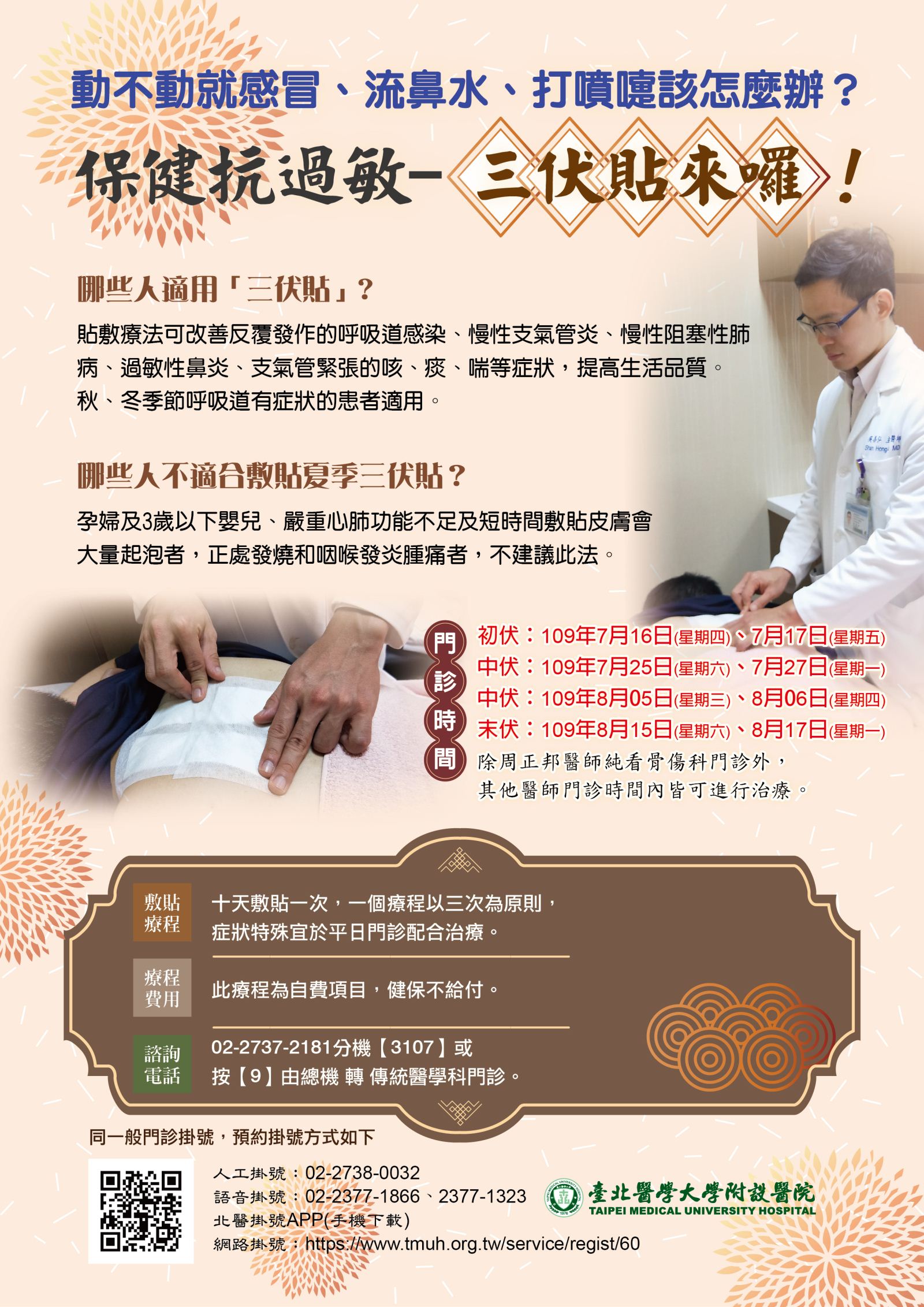 【公告】保健抗過敏 三伏貼門診7/16起開診。