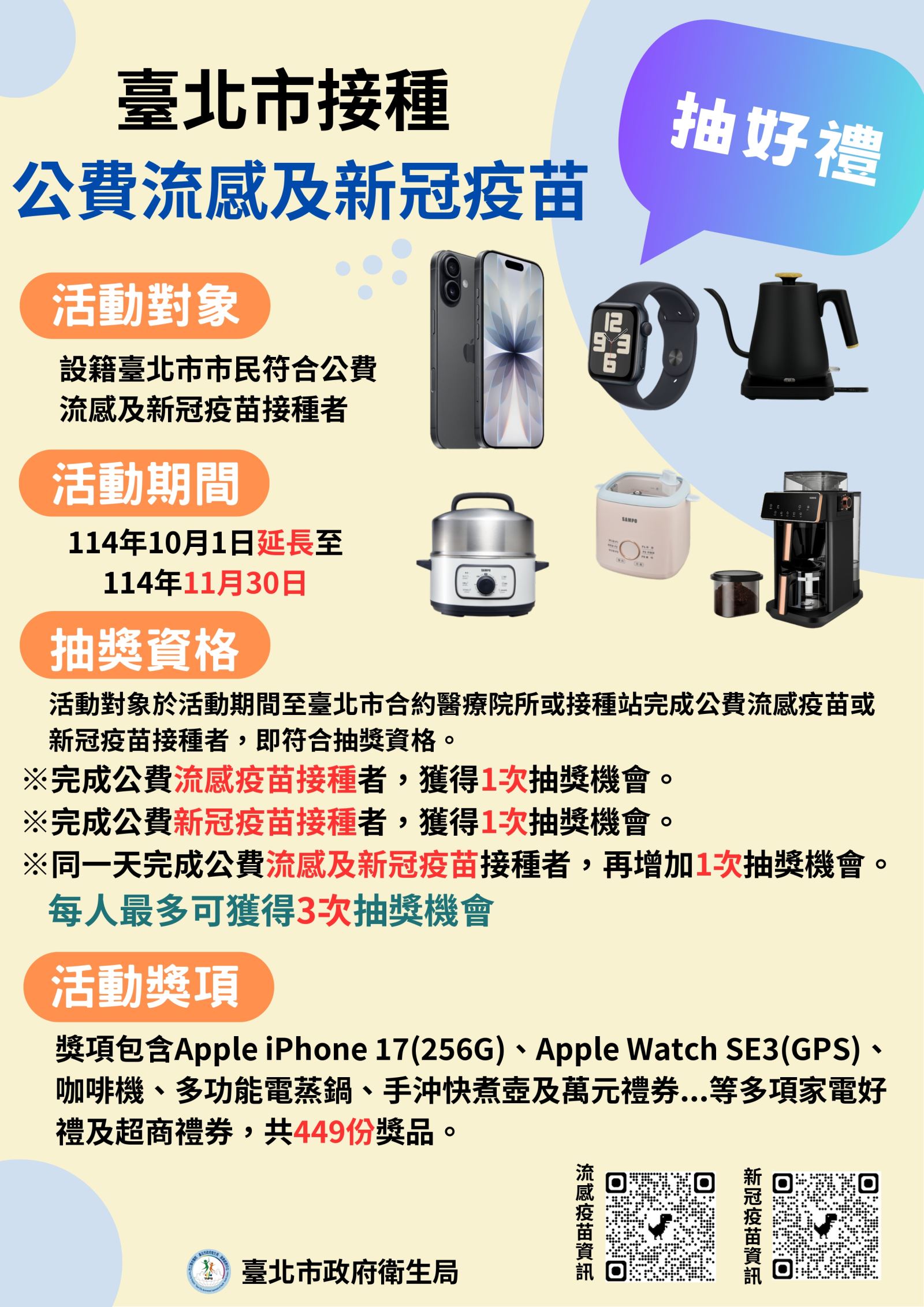 【活動】臺北市接種公費流感及新冠疫苗抽好禮
