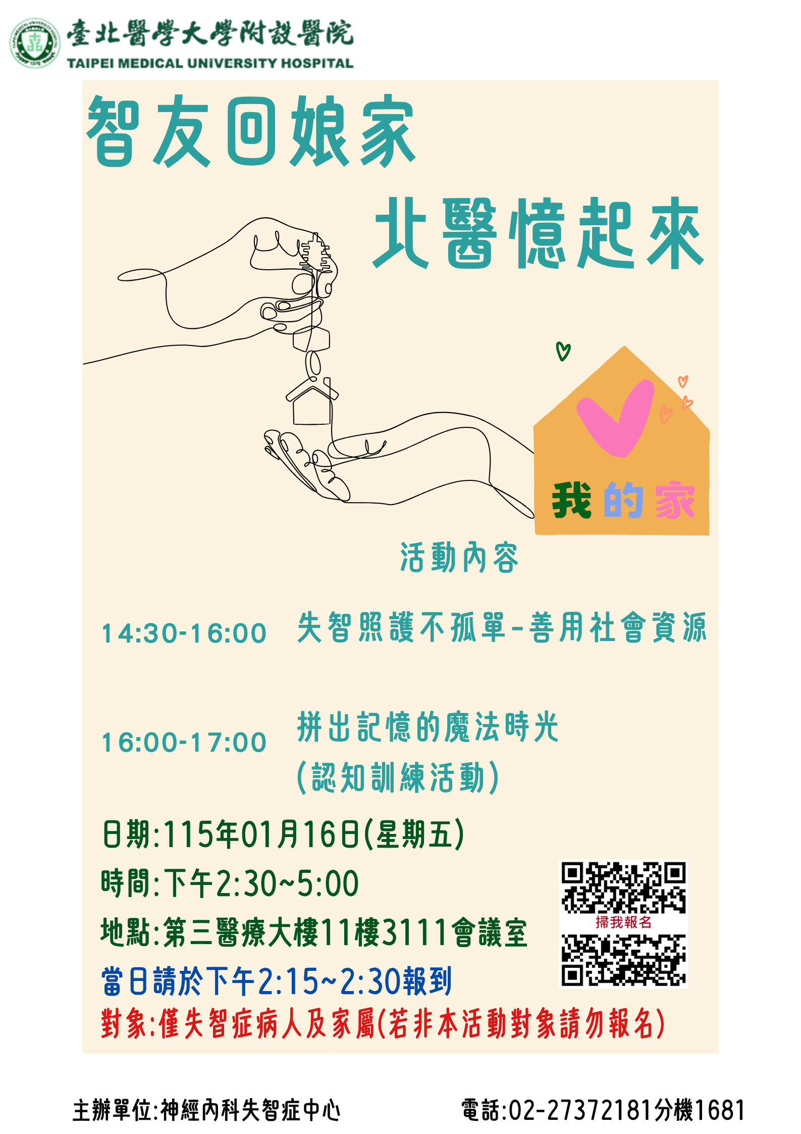 【活動】智友回娘家 北醫憶起來 歡迎參加