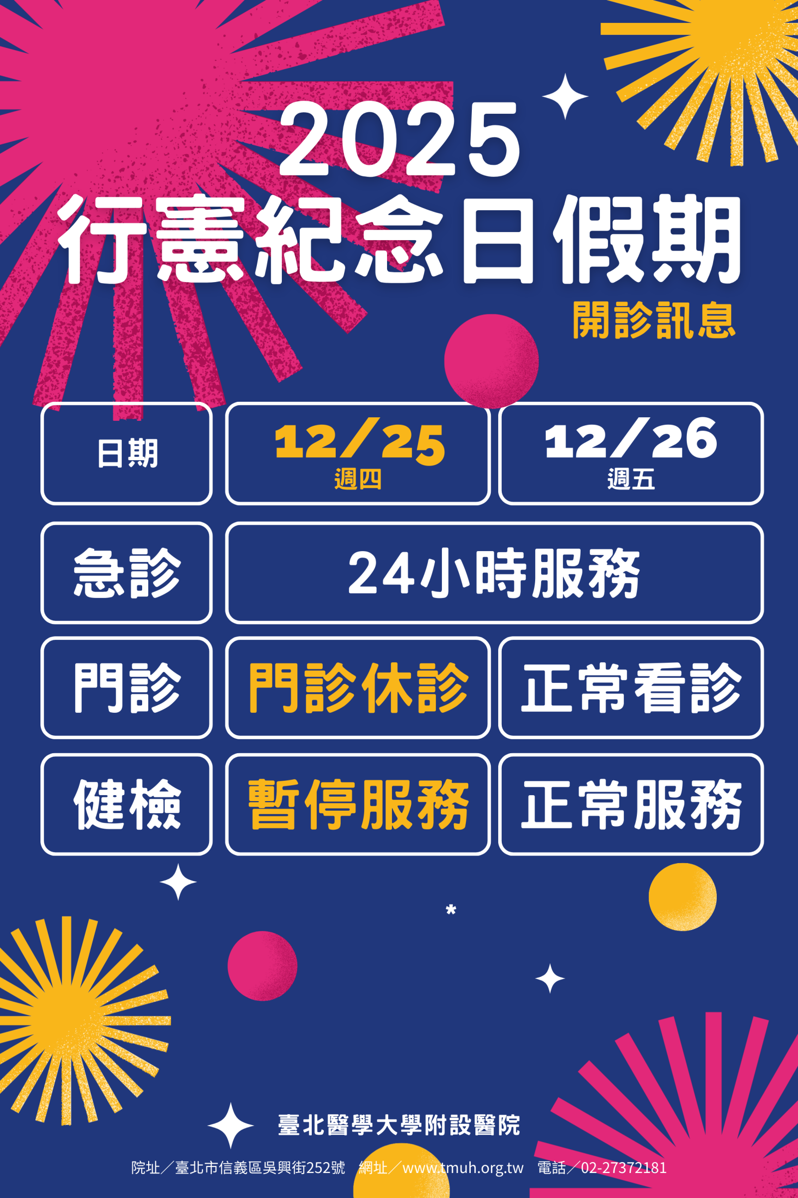 【公告】行憲紀念日(12/25) 門診/健檢休診