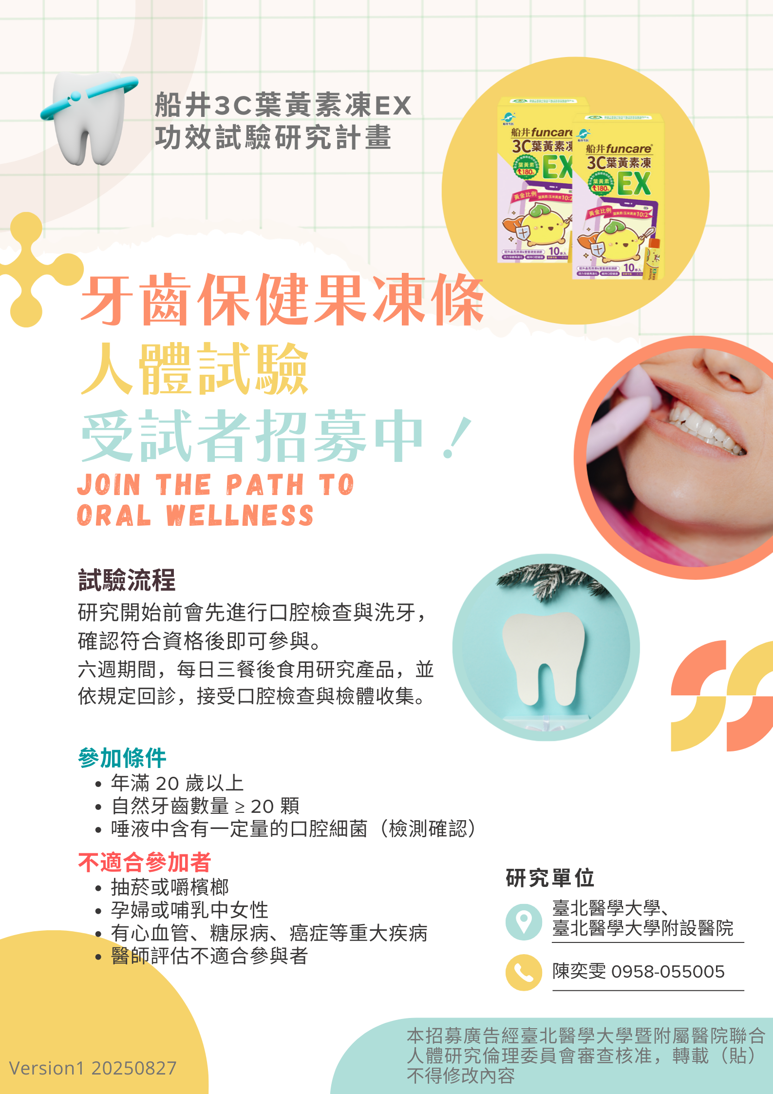 【活動】牙齒保健果凍條 人體試驗受試者招募中