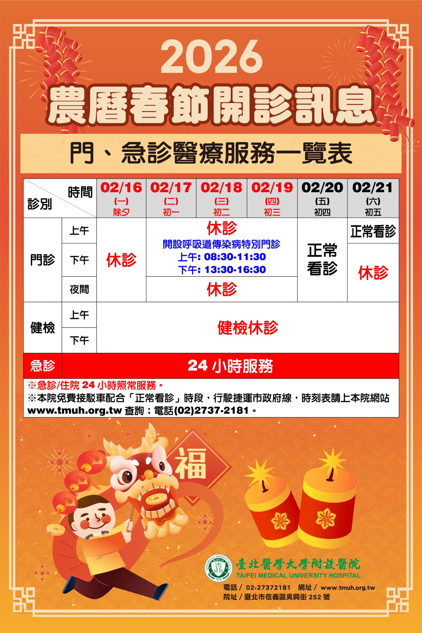 【公告】2026年農曆春節開診訊息