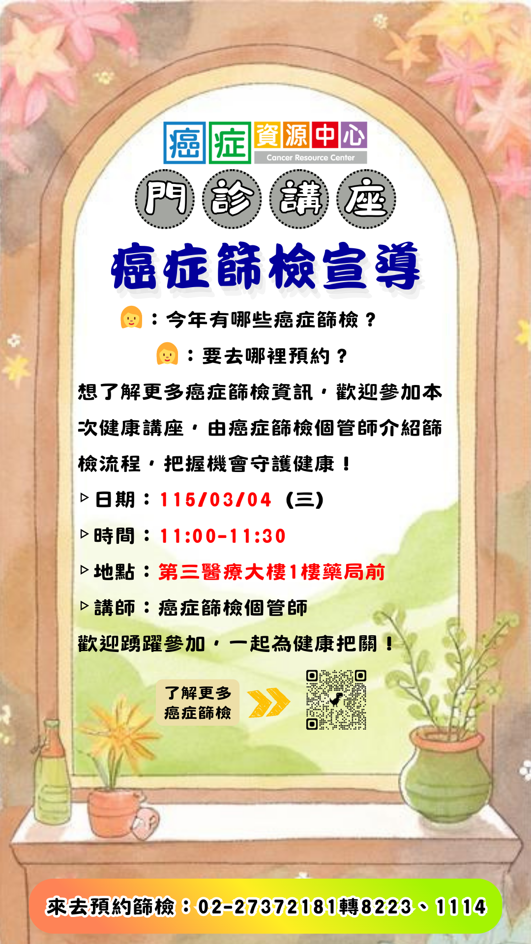 【活動】03/04(三) 癌症篩檢宣導門診講座 歡迎參加