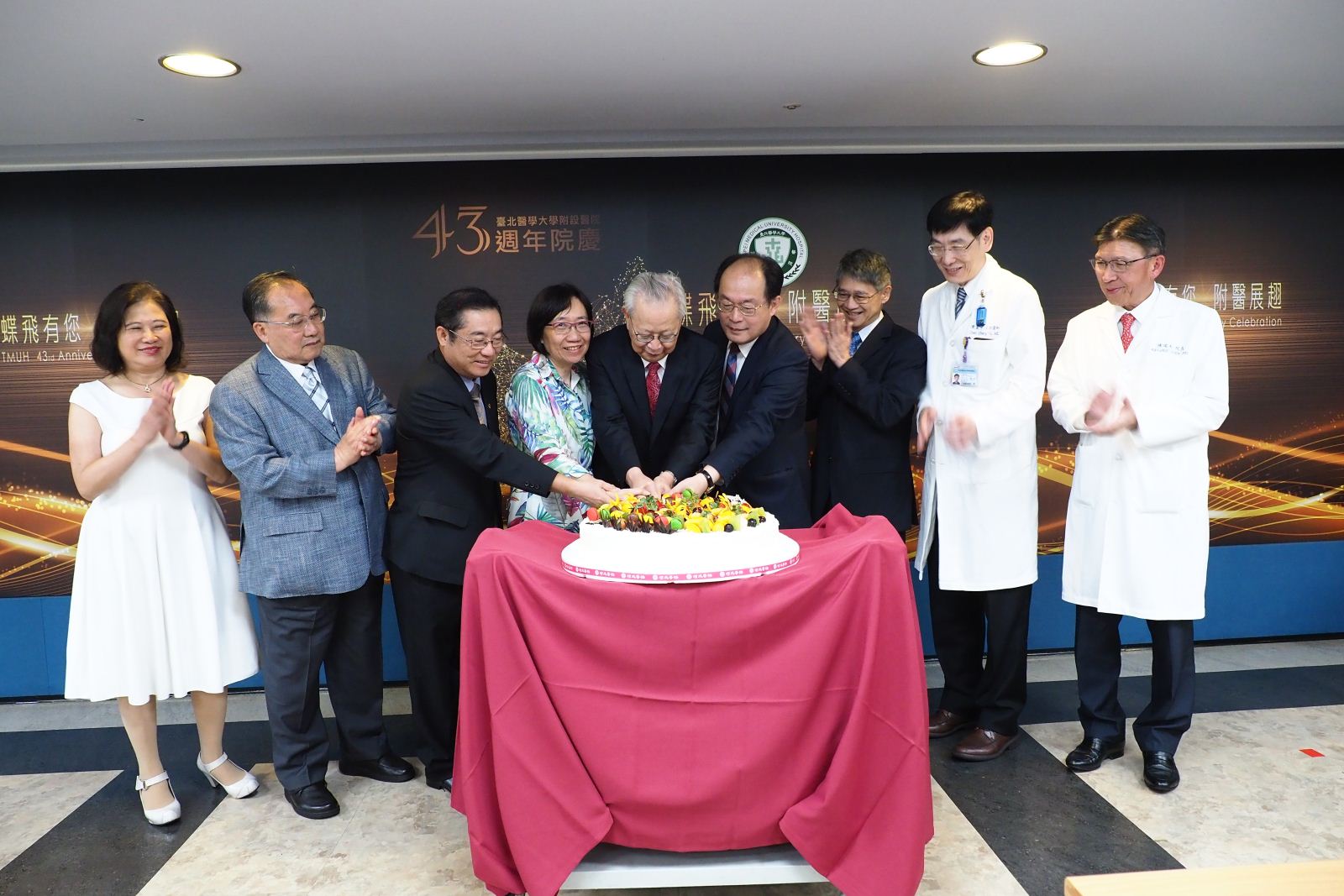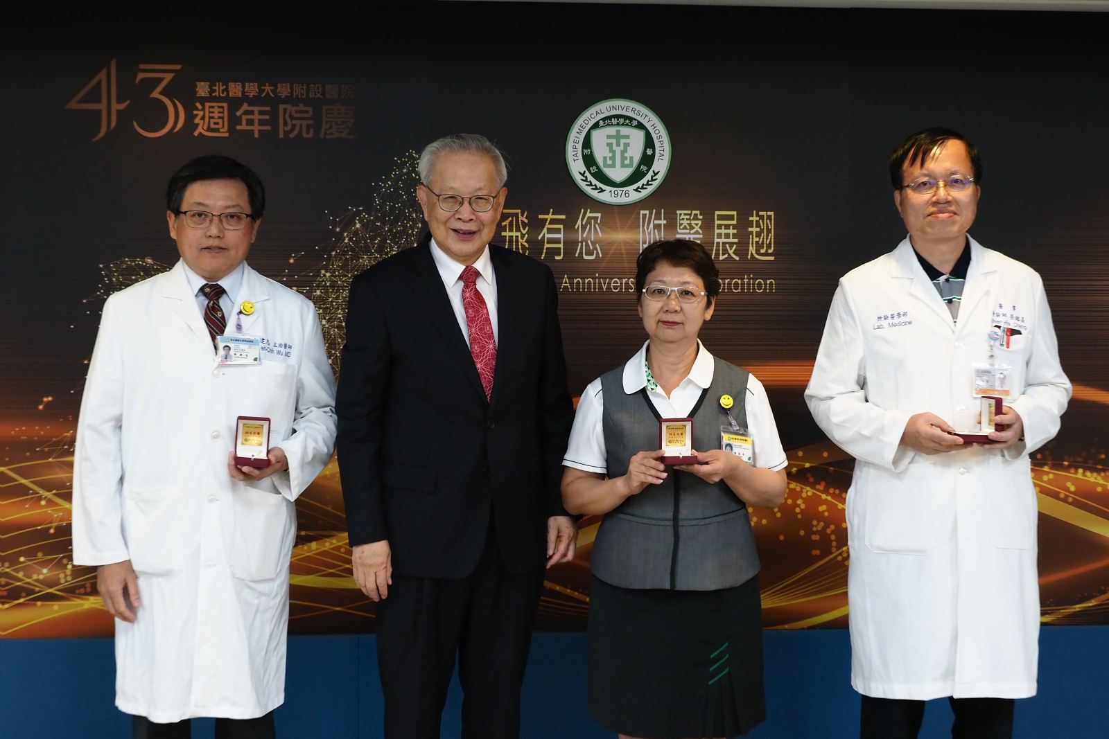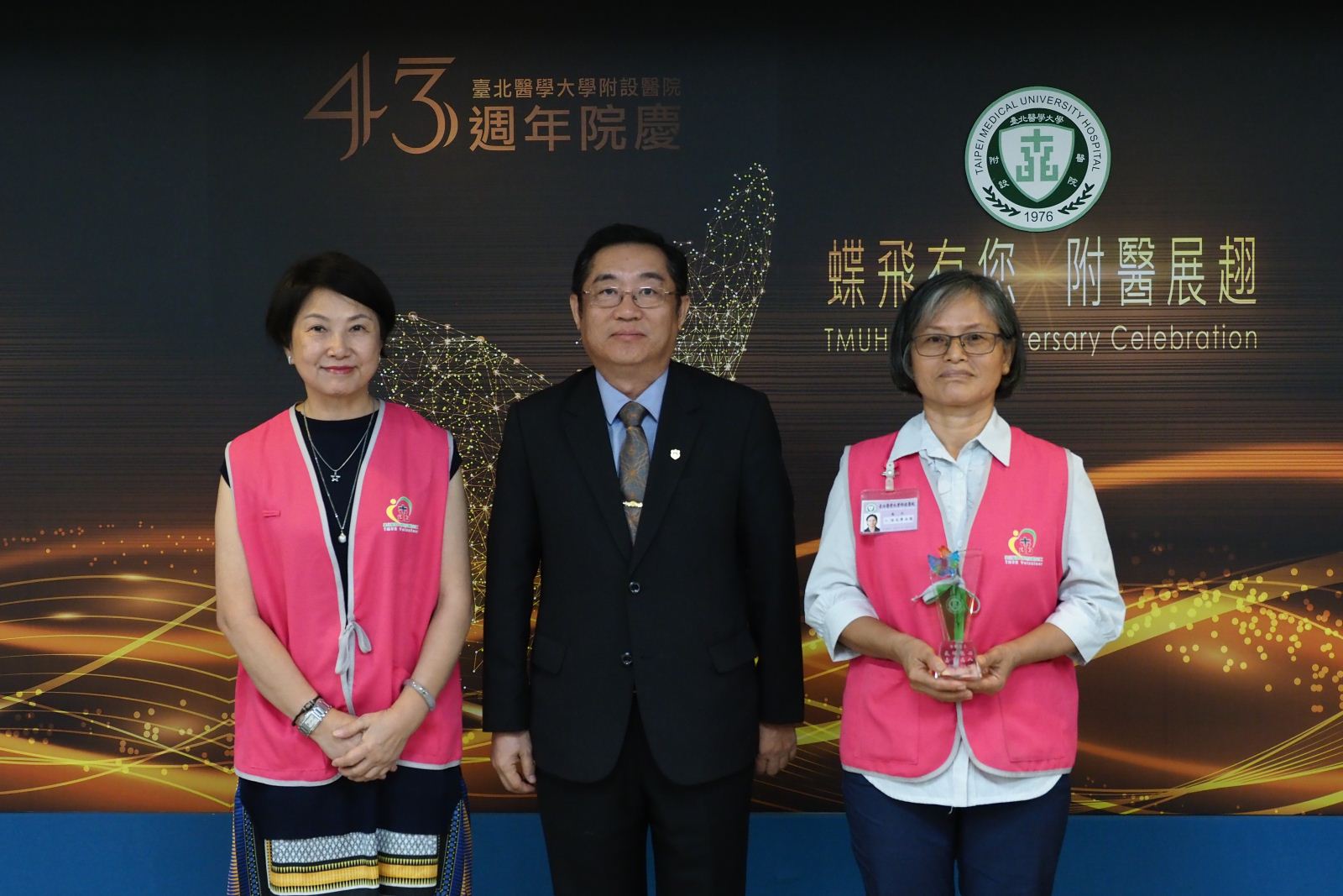 臺北醫學大學附設醫院於8月6日歡度43週年院慶,今年院慶以「蝶飛有您 附醫展翅」為主題,感謝社會各界的支持與院內同仁的努力,讓附醫蛻變展翅,以嶄新面貌提供民眾更優質的醫療服務;同時,今年院慶舉辦「附醫十勝」票選活動,邀請同仁選出最能代表附醫的十個地點,票選結果也於院慶典禮揭曉。(📹 院慶相關報導請點)
