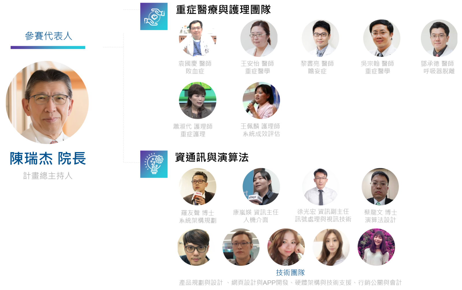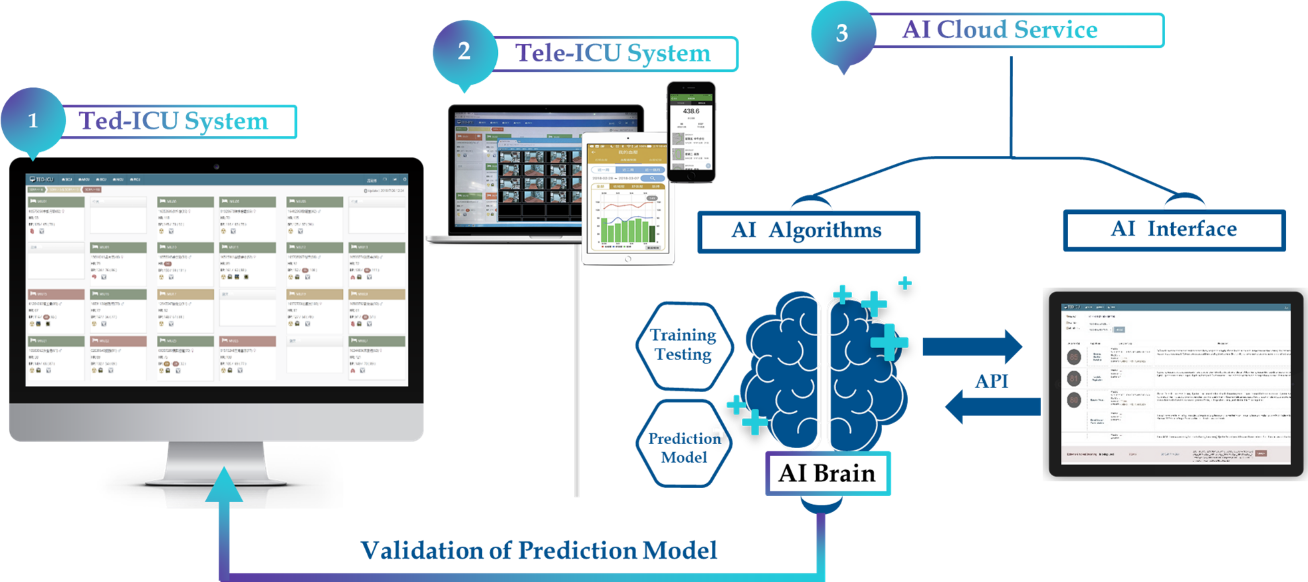 「遠距人工智慧重症照護平台」係由臺北醫學大學暨附設醫院陳瑞杰教授/院長與羅友聲助理教授所執行2018年科技部價創計畫之研發成果,該技術與重症醫護、資訊及演算法等團隊進行跨域合作,共同研發ICU人工智慧(AI)核心技術,以北醫附醫加護病房為實證場域,針對連續性大數據進行收集分析,並以不同演算法來建立重症疾病預測模型,將有助重症病人的救治。