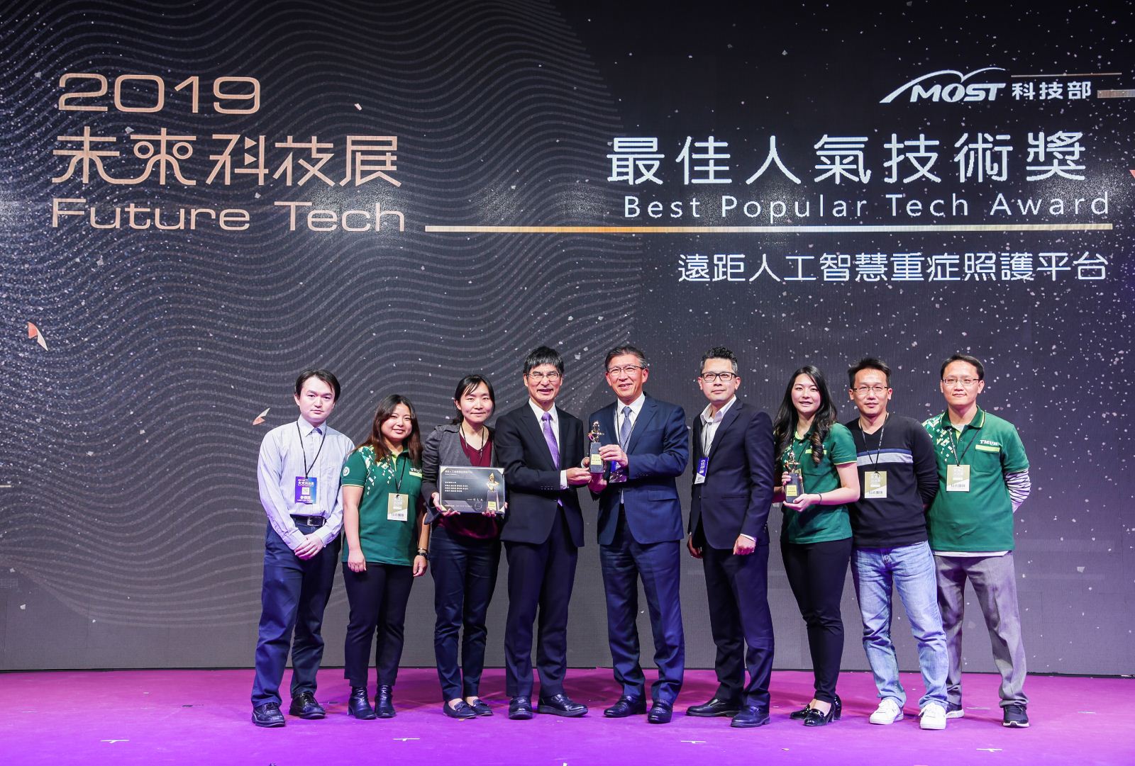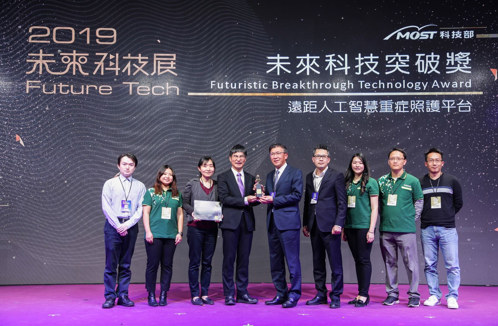 「未來科技突破獎」是科技部為展現臺灣學研單位的科研實力,聚焦產業及社經需求,促成產學媒合效益,從全國學研單位執行的研究計劃成果中,選出具有「產業應用性」與「科學突破性」的前瞻科研成果。今年超過500項技術參賽,共有88項獲選得獎並獲邀展覽。在展覽期間總參觀人數更突破十萬人,主辦單位也透過智慧人流探勘技術、媒合及票選機制,進一步選出「最佳人氣技術獎」等10個得獎團隊,肯定「遠距重症照護人工智慧平台(Ted-ICU AI Platform)」成於本次展覽吸睛技術亮點。